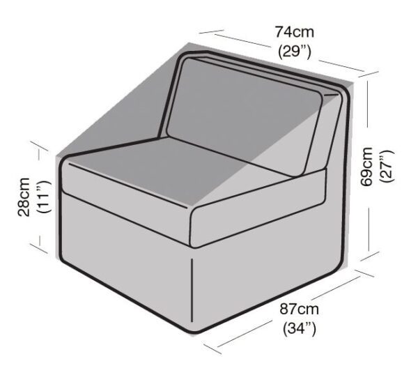 Size Check: 74cm (29″) Long 87cm (34″) Wide 69cm (27″) High Back 28cm (11″) High Front