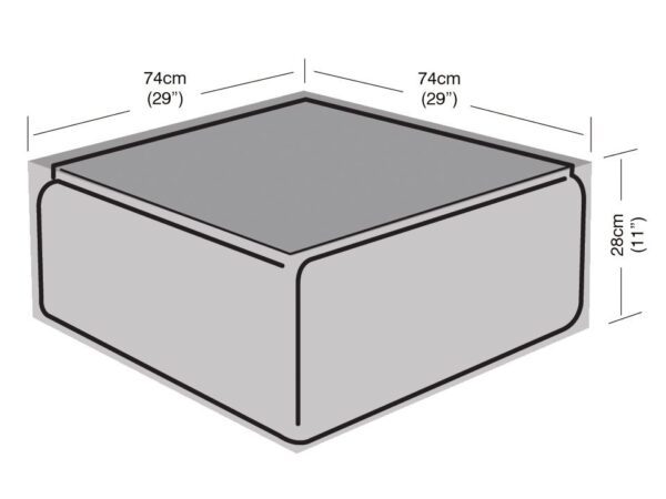 Size Check: 74cm (29″) Long 74cm (29″) Wide 28cm (11″) High Also Covers: Footstool or Ottoman